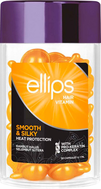 Олія для волоссяEllips Hair Vitamin Smooth&Shiny Бездоганний шовк з PRO-кератиновим комплексом.Незмивна натуральна оліяEllips Hair Vitamin Smooth&Shinyпокращує структуру волосся і робить його гладким, як шовк. Завдяки легкій структурі олія моментально вбирається, не залишаючи жирних слідів, надає не тільки розкішного сяйва волоссю, але й запобігає сухості та ламкості. Олія Алое Віра, PRO-кератиновий комплекс, вітаміни А, С, Е та Pro-Vitamin B-5 живлять волосся, захищають від шкідливого впливу УФ – променів.
