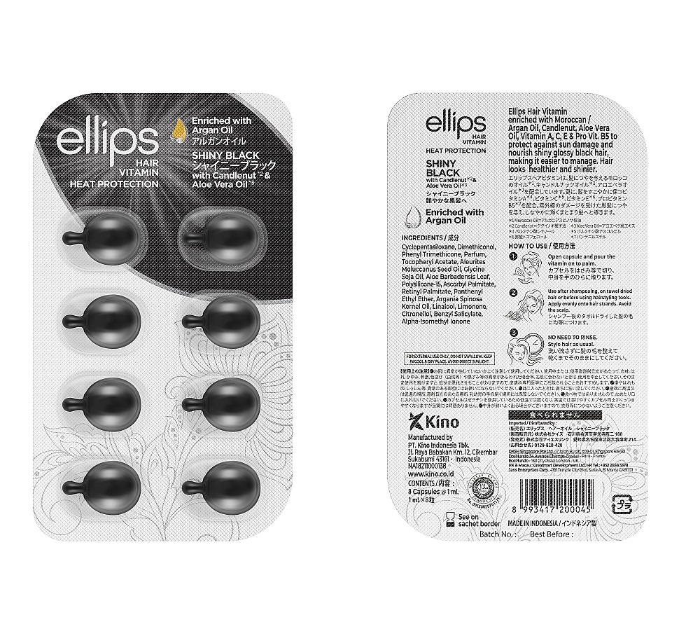 Купити Капсули для темного волосся Нічне сяйво з олією кукуї та алое віра Ellips Hair Vitamin Shiny Black Kemiri & Aloe Vera Oil, 8х1 мл, ви зможете у нашому інтернет-магазині limonad з доставкою по всій Україні в тому числі і Київ, Дніпро, Одеса, Харків, Запоріжжя, Одеса, Львів та багато інших населених пунктів.