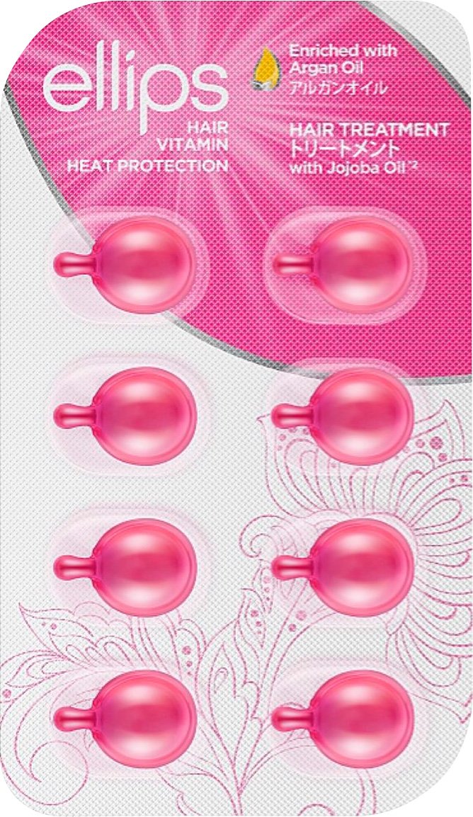 Олія для волосся Ellips Hair Vitamin Treatment Терапія з маслом жожоба. Незмивна натуральна олія Ellips Hair Vitamin Treatment — це реанімація для сухого та пошкодженого волосся. Завдяки легкій структурі олія моментально вбирається, не залишаючи жирних слідів, добре відновлює пошкоджену структуру волосся, полегшує розчісування та захищає від УФ – променів. До складу входять Арганова олія, олія Жожоба, вітаміни А, С, Е та провітамін Б-5. Не важливо, пошкоджене ваше волосся плойкою, праскою, феном або екстремальним фарбуванням вітамінна олія вдихне друге життя вашому волоссю, забезпечивши їм красу, здоров'я та блиск.