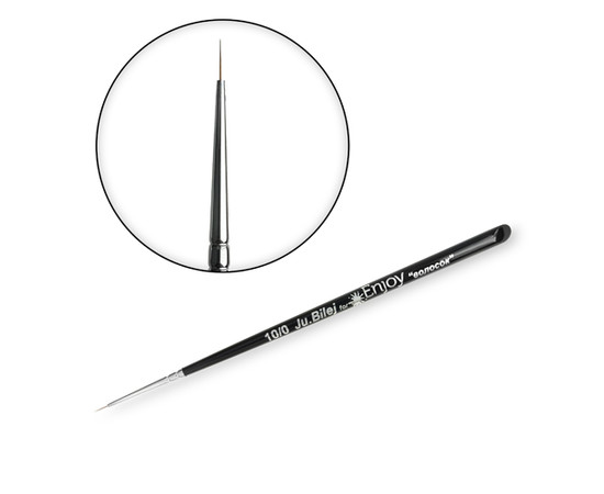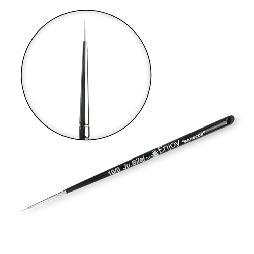 Пензель для розпису Enjoy by Ju.Bilej Волосок #10Новинка для майстрів манікюру: ексклюзивні кисті Ju.Bilej від заводу Roubloff, створені спеціально для Enjoy Professional. Це авторська запатентована розробка майстра міжнародного класу Юлії Білей. Пензлі виготовлені з якісного ворсу та деревини, служать довгі роки.Пензель Волосок #10 ідеальний для промальовування складних тонких ліній і дрібних деталей, таких як вензелі, тонкі лінії, мініатюри, візерунки та інші деталі. Пензлик підходить для китайського та художнього розпису. Кисть дуже тонка, неначе волосок. Виготовлена з натурального ворсу сибірського стовпчика.Пензлик набитий щільно, ворс не випадає, не залишає смуги, не набирає великої кількості матеріалу, що дозволяє зробити роботу акуратнішою. Ручка кисті виготовлена з дерева, не ковзає та зручно лежить у руці.Довжина ворсу: 6 мм