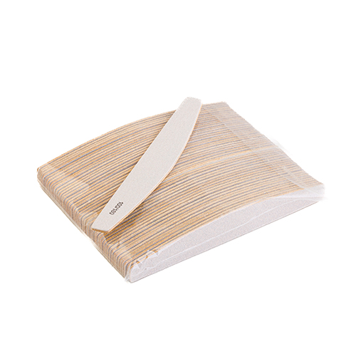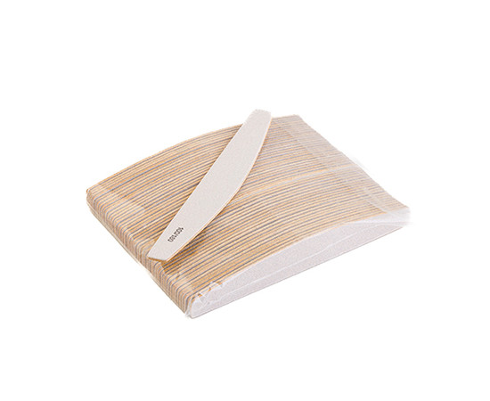 Набір одноразових пилок "Місяць" від Enjoy Professional на дерев'яній основі здатний полегшити роботу майстра завдяки зручній формі: пряма та напівкругла сторони пилки ідеально підходять як для опила нігтів та довжини, так і для формування форми нігтя та обробки зони кутикули.