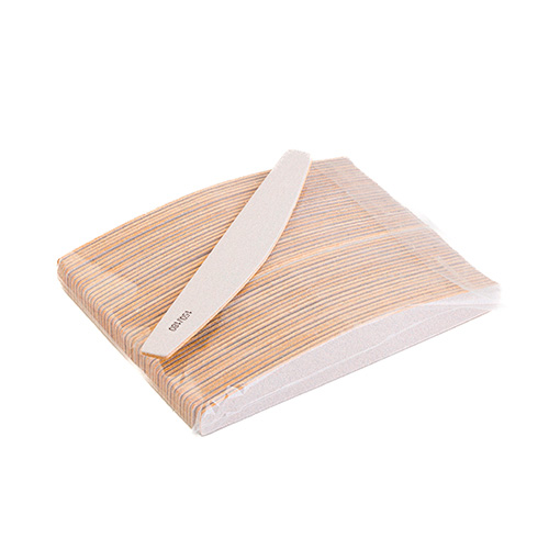 Набір одноразових пилок "Місяць" від Enjoy Professional на дерев'яній основі здатний полегшити роботу майстра завдяки зручній формі: пряма та напівкругла сторони пилки ідеально підходять як для опила нігтів та довжини, так і для формування форми нігтя та обробки зони кутикули.