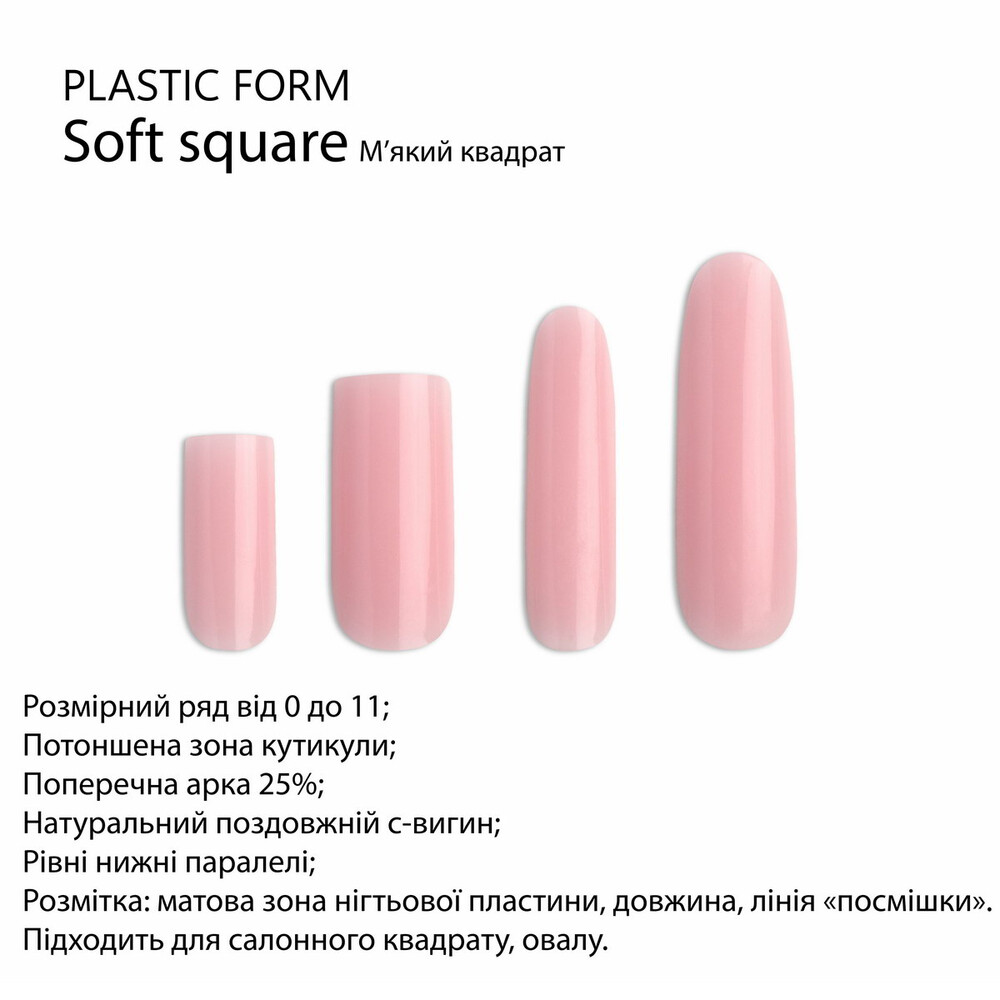 Форми пружні, відмінно тримають архітектуру та знімаються без зусиль після полімеризації із будь-яким матеріалом. Підходить для використання з матеріалами різного типу: полі-гель, акрил-гель, білдер-гелі і гелі-желе. Вдосконалена форма створить архітектуру нігтів без зайвих зусиль навіть для початківців в моделюванні.