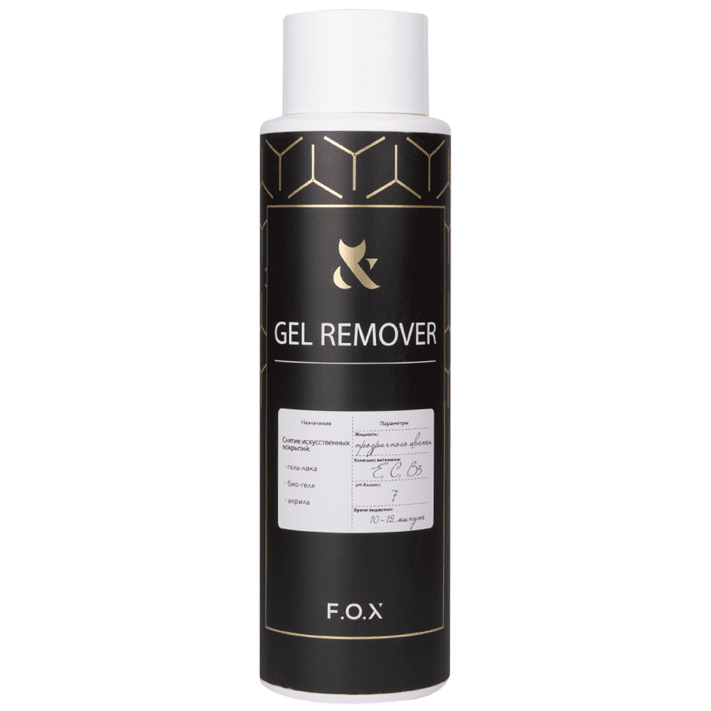 Рідина для зняття гель-лаку F.O.X Gel Remover є професійним продуктом, створеним спеціально для швидкого і якісного видалення стійких манікюрних покриттів. Не має негативного впливу і не призводить до руйнування натуральних нігтьових пластин. Містить вітаміни Е, С, В5 і спеціальні зволожуючі компоненти для нігтів і шкіри навколо них.