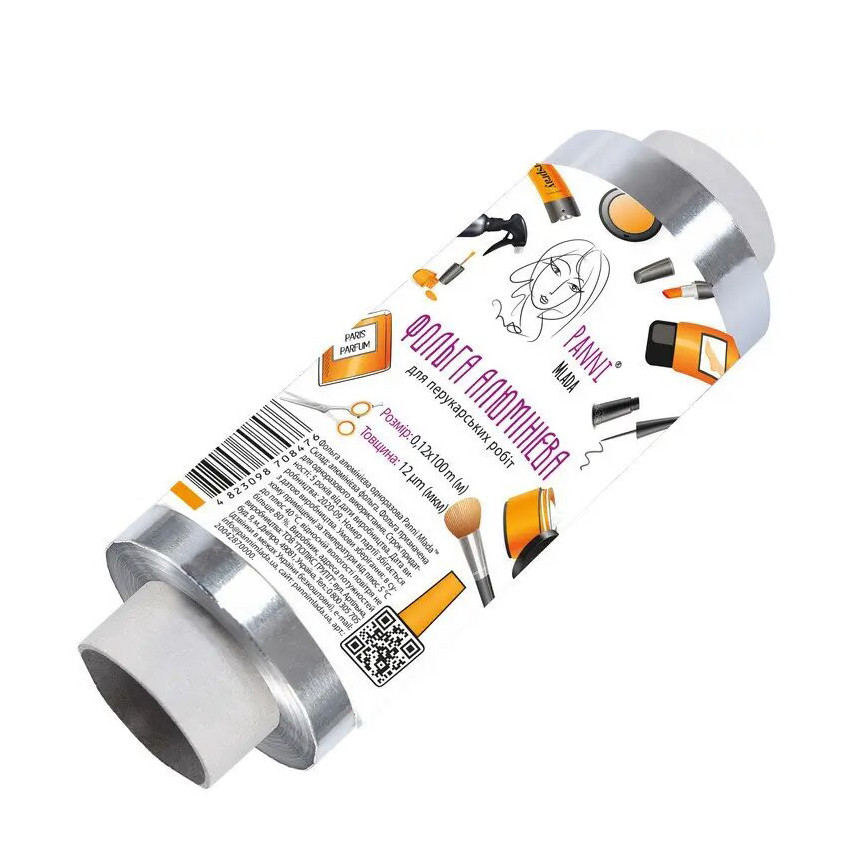 Фольга алюмінієва Panni Mlada використовується при роботі з перманентними барвниками на середньому та довгому волоссі. Випускається фольга в рулонах, що дозволяє розрізати на смужки необхідної довжини. Фольга застосовується для мелірування, секторного освітлення, для створення ефектів та відливів, дозволяє здійснювати використання складних технік нанесення декількох відтінків одночасно.