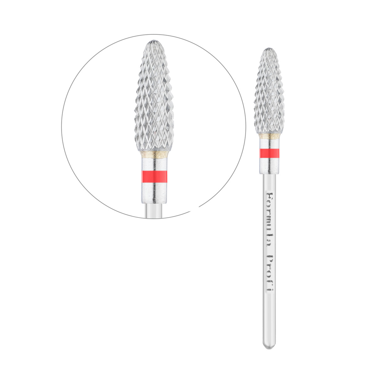 Твердосплавні насадки Formula Profi призначені для професійного застосування в апаратному манікюрі та педикюрі. Матеріалом для виготовлення їх робочої частини є особливо стійкий і твердий вольфрам-карбідний сплав з покриттям з нітрит-титану. Заточення відрізняється високою точністю та виконується способом алмазного шліфування. Саме тому твердосплавні фрези мають бездоганні різальні властивості і не тупляться протягом тривалого часу.