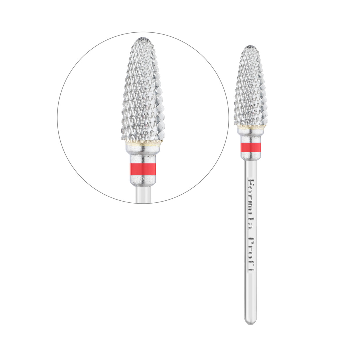 Твердосплавні насадки Formula Profi призначені для професійного застосування в апаратному манікюрі та педикюрі. Матеріалом для виготовлення їх робочої частини є особливо стійкий і твердий вольфрам-карбідний сплав з покриттям з нітрит-титану. Заточення відрізняється високою точністю та виконується способом алмазного шліфування. Саме тому твердосплавні фрези мають бездоганні різальні властивості і не тупляться протягом тривалого часу.
