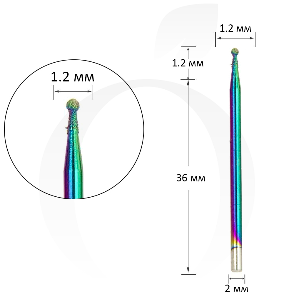 Фреза алмазна куля кольорова, діаметр 1.2 мм