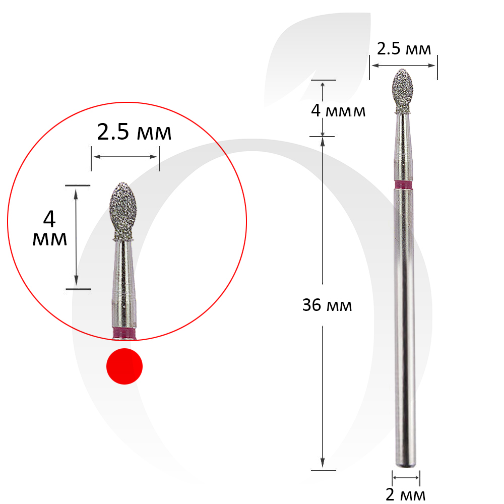 Фреза алмазна бутон червона 2.5 мм, робоча частина 4 мм