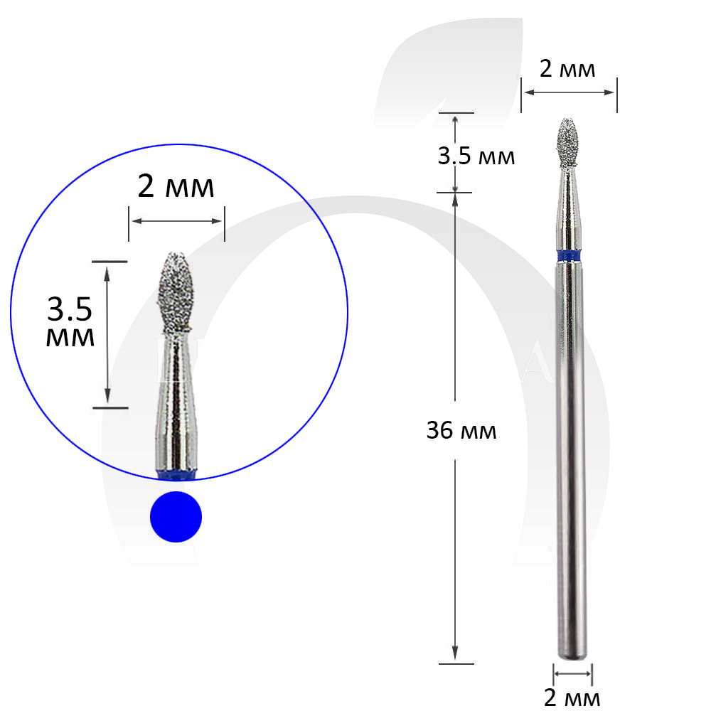 Фреза алмазна бутон синя 2 мм, робоча частина 3.5 мм