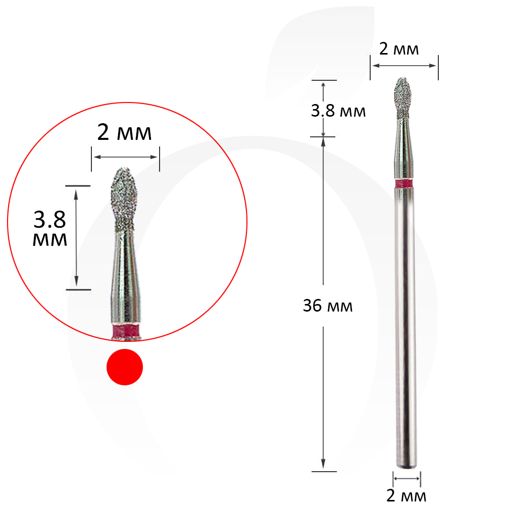 Фреза алмазна бутон красная 2 мм, робоча частина 3.8 мм