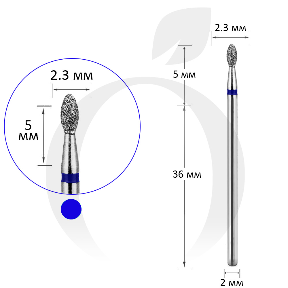 Фреза алмазна бутон синя 2.3 мм, робоча частина 5 мм (A14)