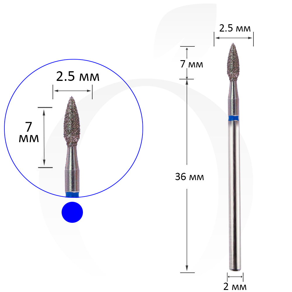 Фреза алмазна бутон синя 2.5 мм, робоча частина 7 мм