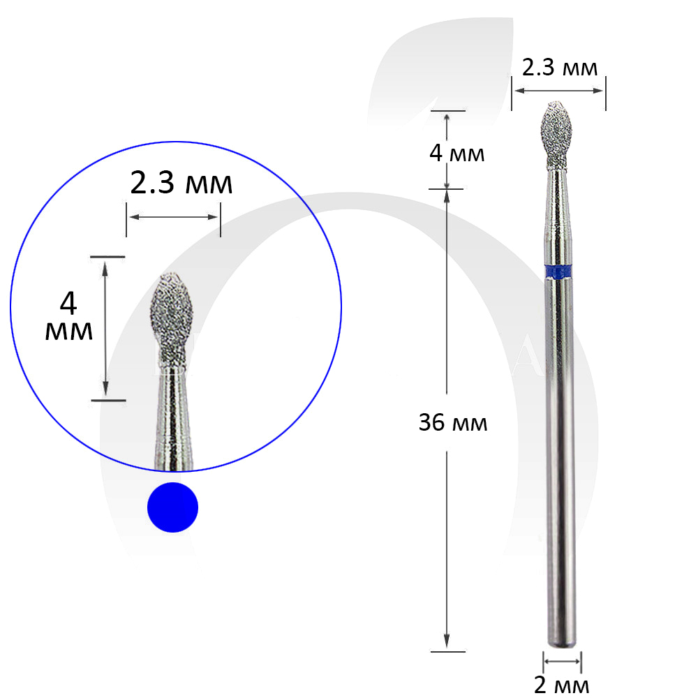 Фреза алмазна бутон синя 2.3 мм, робоча частина 4 мм