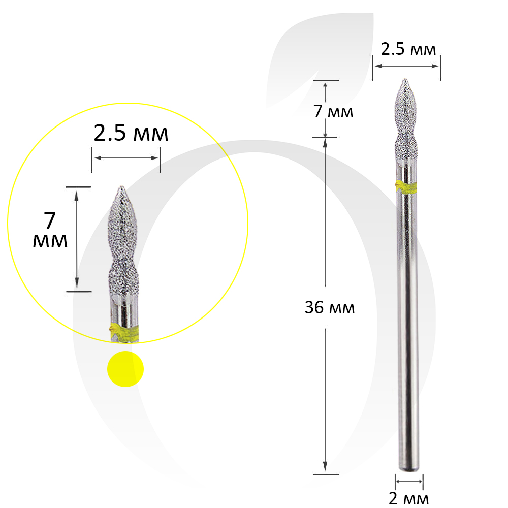 Фреза алмазна бутон жовта 2.3 мм, робоча частина 5.5 мм