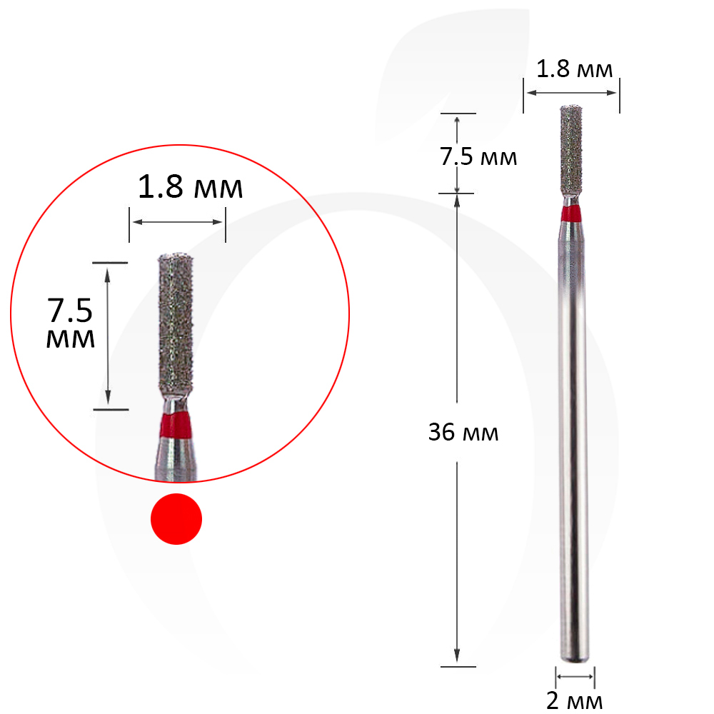 Фреза алмазна циліндр червона 1.8 мм, робоча частина 7.5 мм