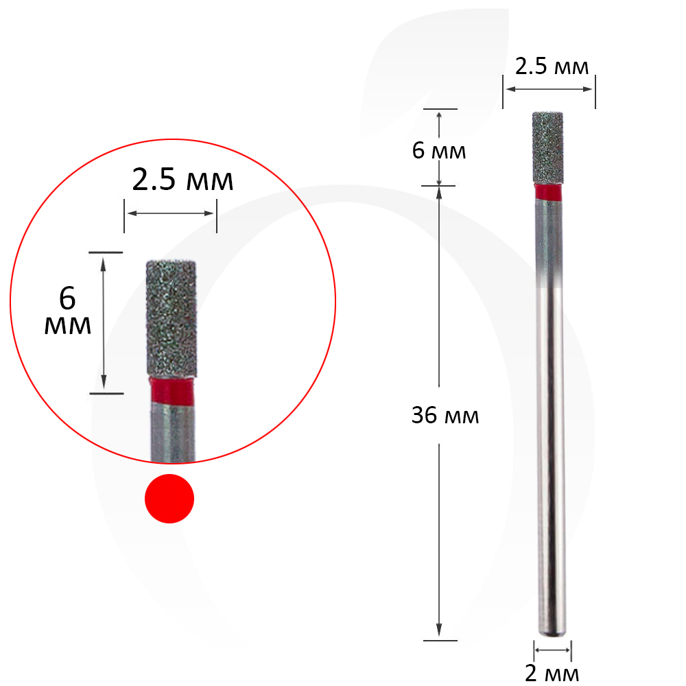 Фреза алмазна циліндр червона 2.5 мм, робоча частина 6 мм
