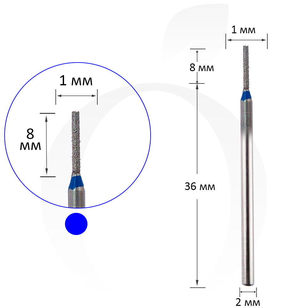 Фреза алмазна циліндр синя 1 мм, робоча частина 8 мм