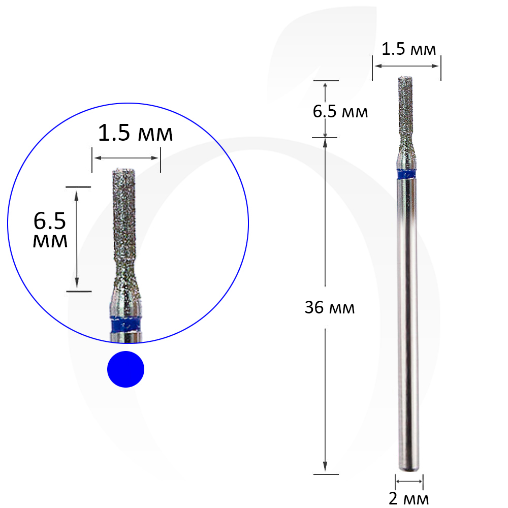 Фреза алмазна циліндр синя 1.5 мм, робоча частина 6.5 мм
