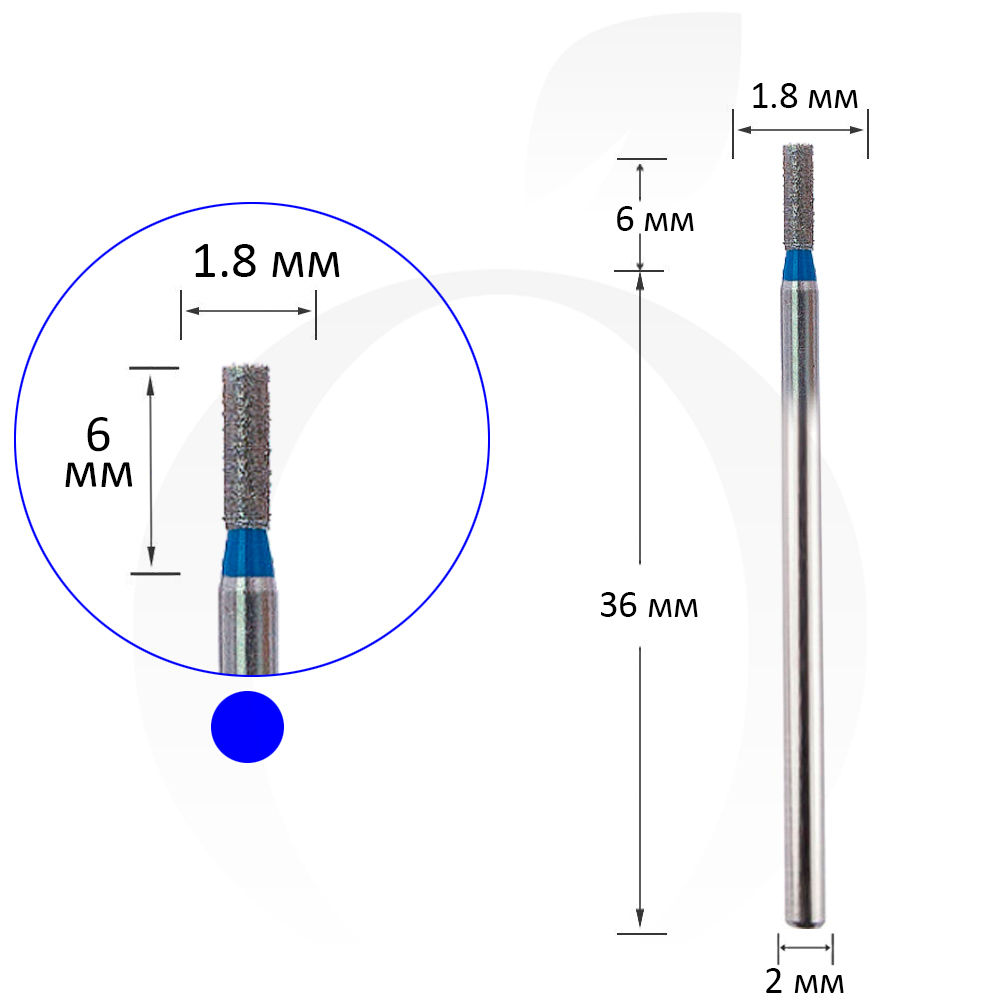 Фреза алмазна циліндр синя 1.8 мм, робоча частина 6 мм
