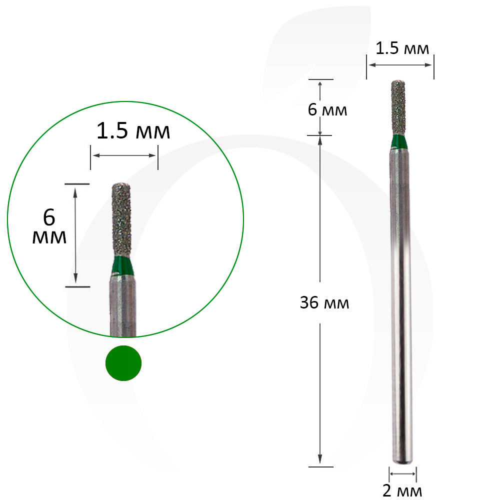Фреза алмазна циліндр зелена 1.5 мм, робоча частина 6 мм