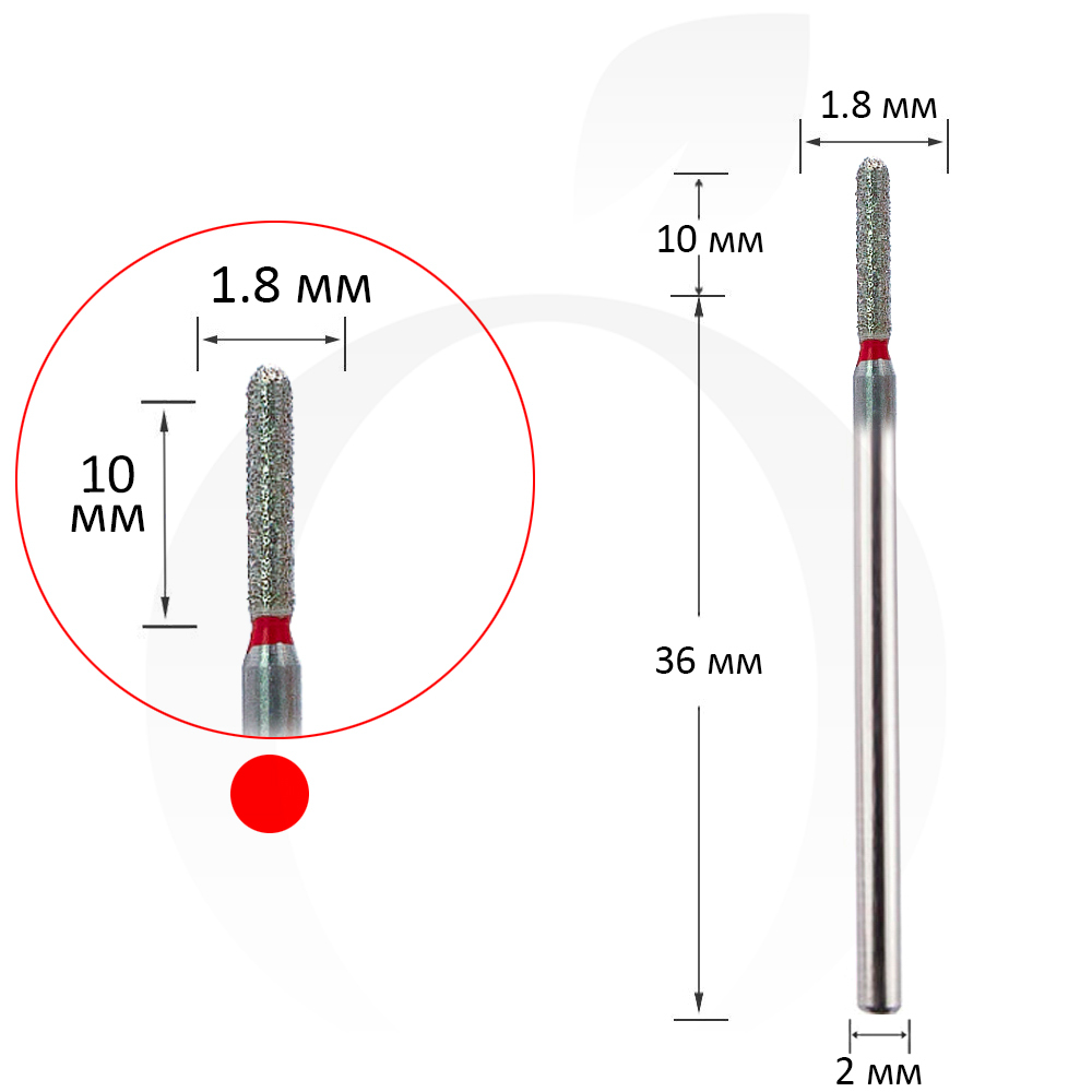 Фреза алмазна циліндр червона 1.8 мм, робоча частина 10 мм
