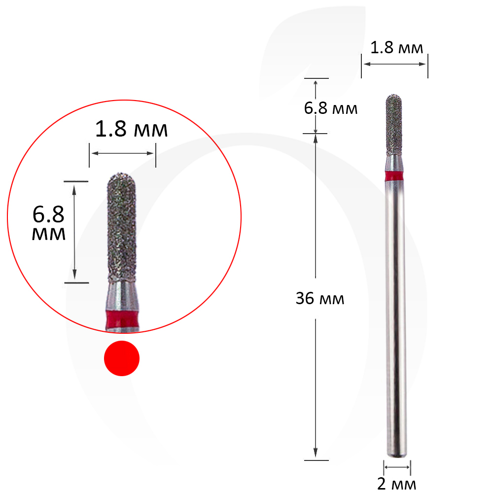 Фреза алмазна циліндр червона 1.8 мм, робоча частина 6.8 мм