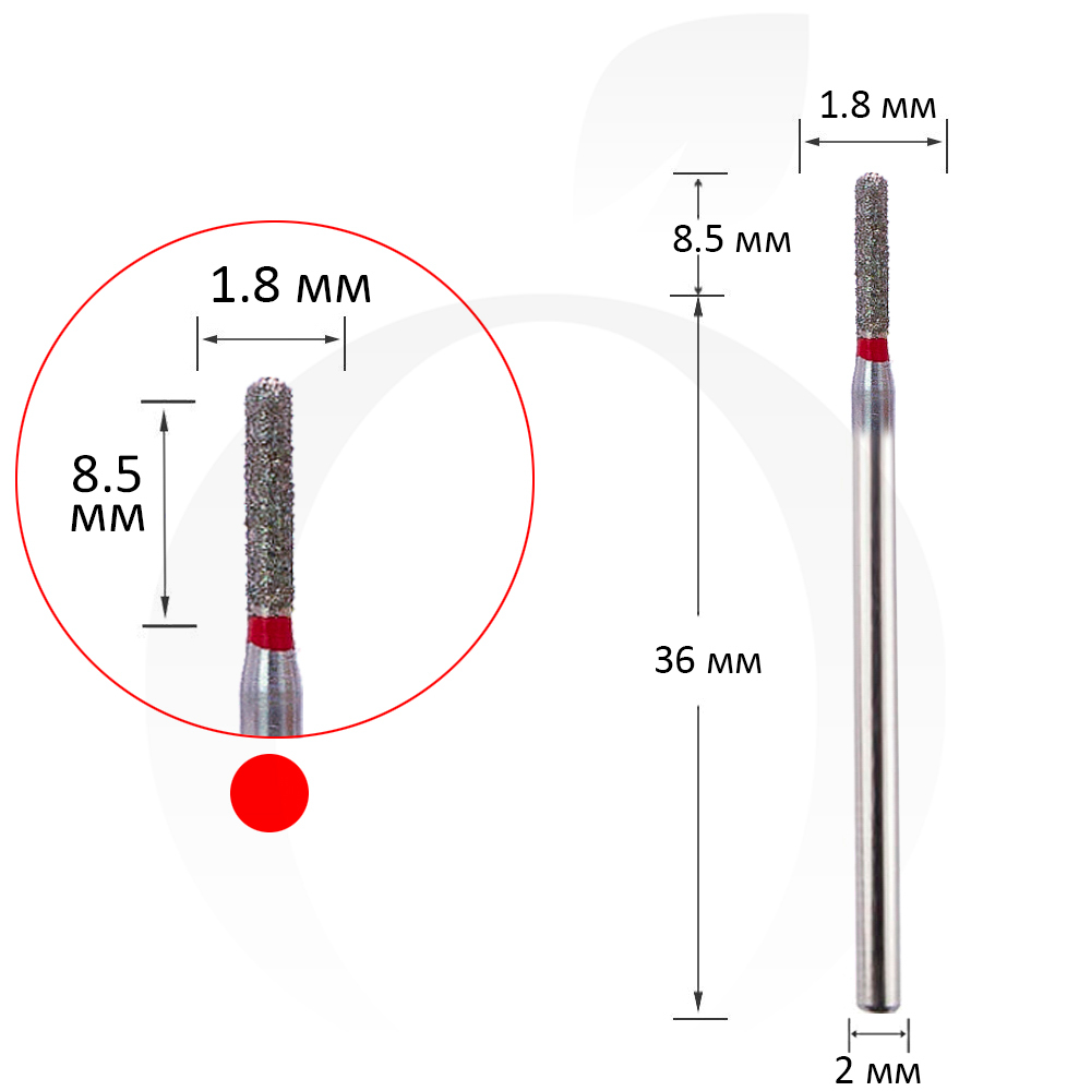Фреза алмазна циліндр червона 1.8 мм, робоча частина 8.5 мм