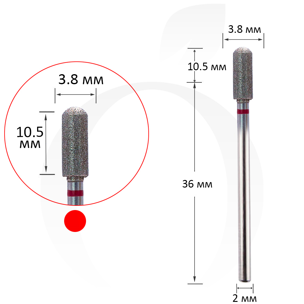 Фреза алмазна циліндр червона 3.8 мм, робоча частина 10.5 мм