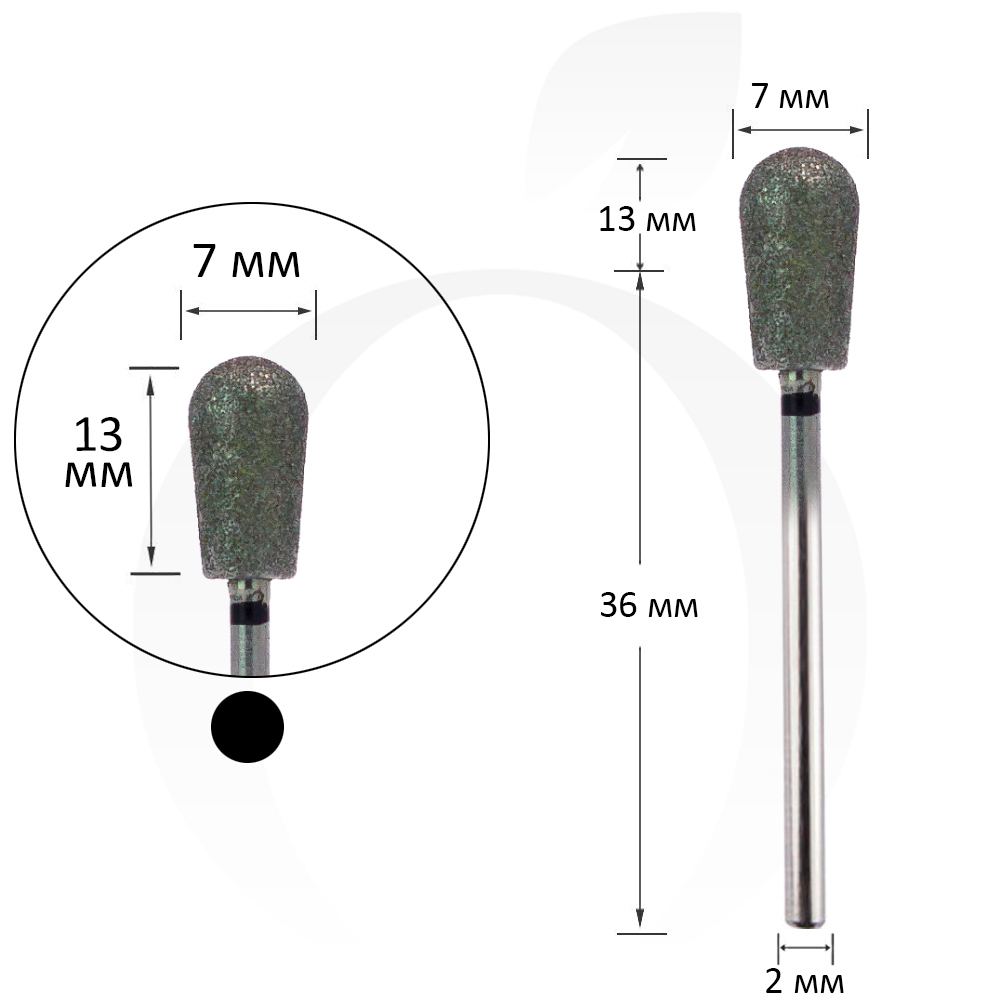 Насадка (фреза) з алмазним напиленням використовується для обробки кутикули, бічних валиків, нігтя біля кутикули перед нарощуванням та корекцією. Зручна форма дозволяє підібратися в важкодоступні місця.