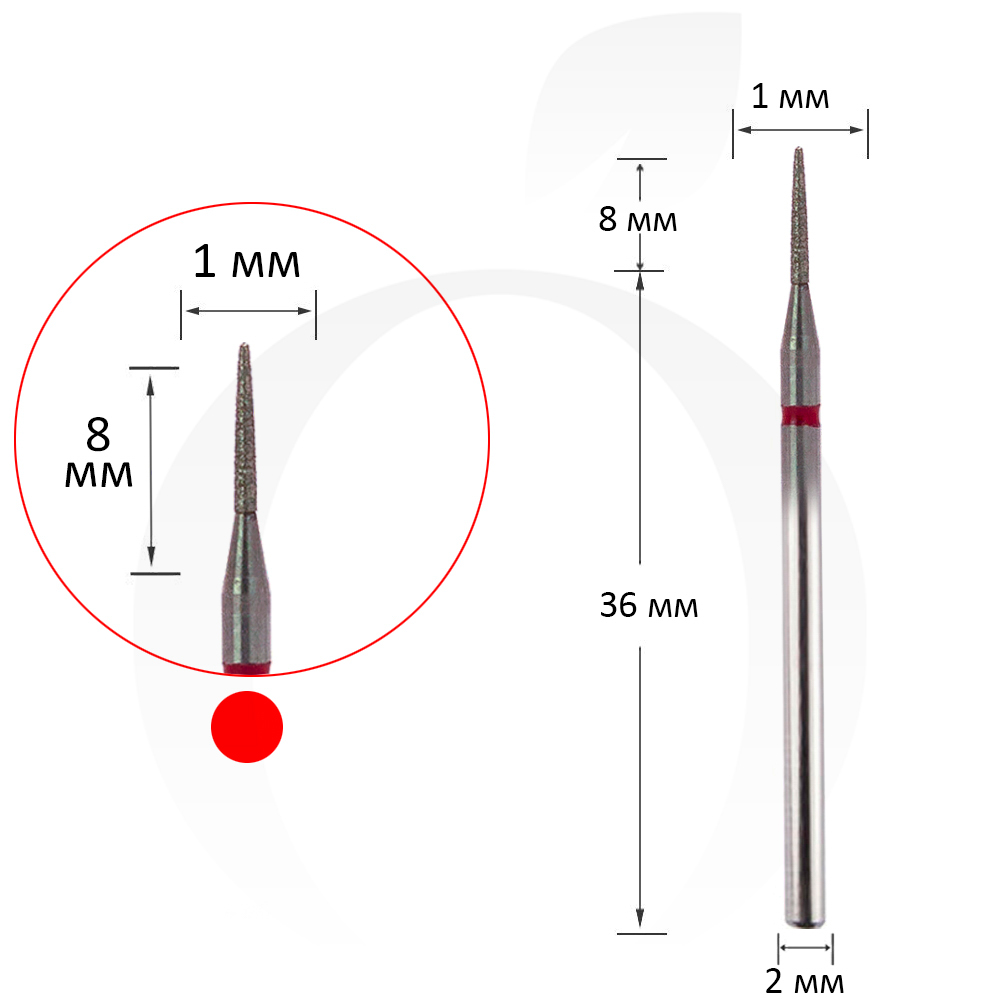 Фреза алмазна конус червона 1 мм, робоча частина 8 мм