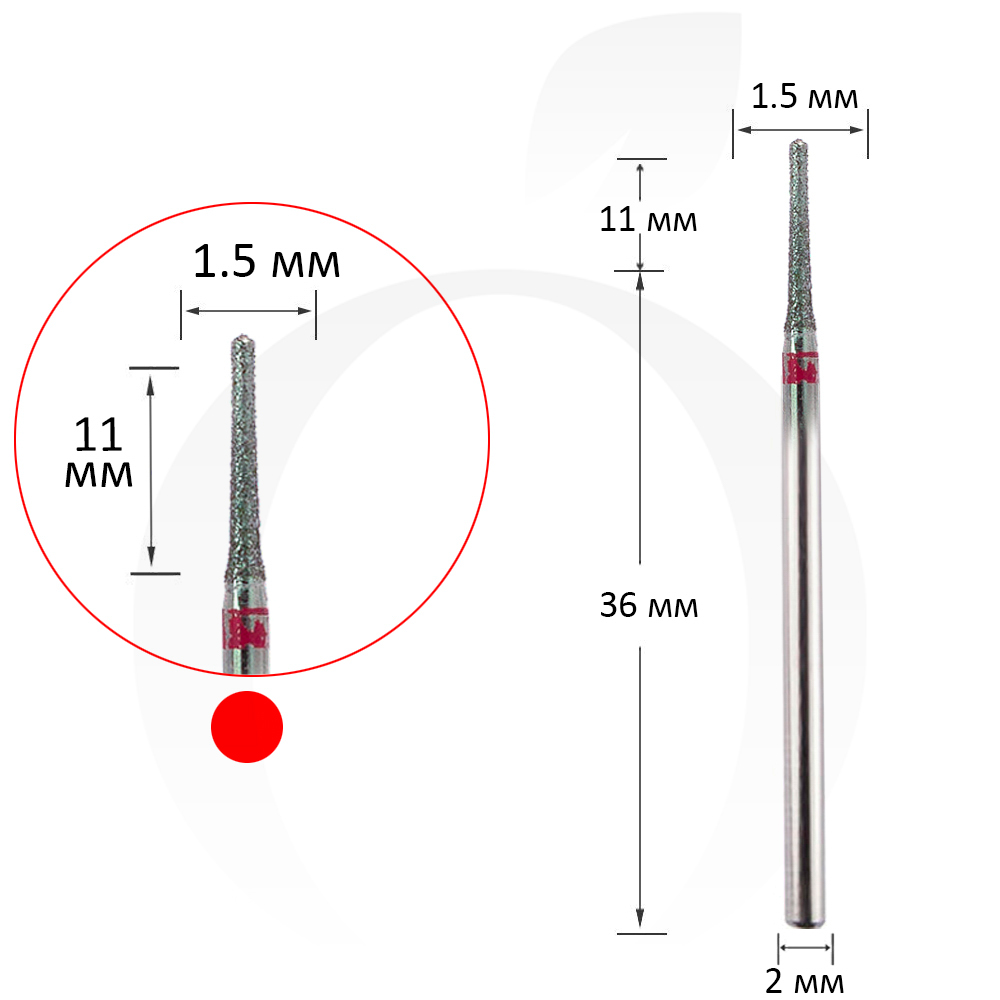 Фреза алмазна конус червона 1.5 мм, робоча частина 11 мм