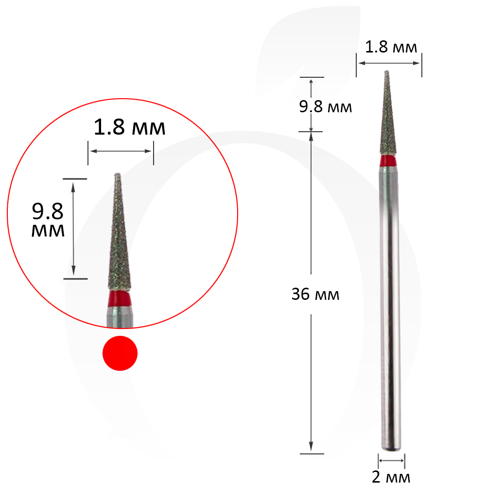 Фреза алмазна конус червона 1.8 мм, робоча частина 9.8 мм