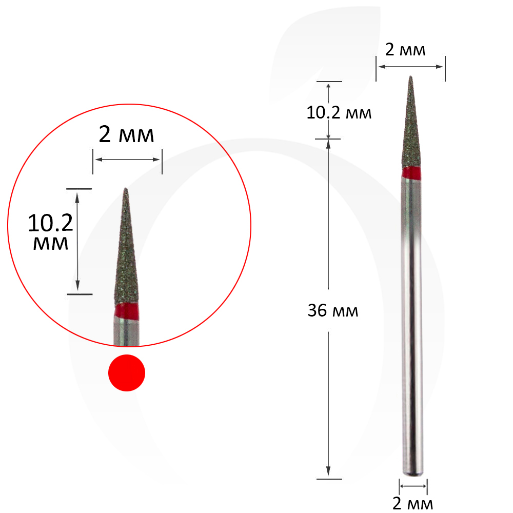Фреза алмазна конус червона 2 мм, робоча частина 10.2 мм