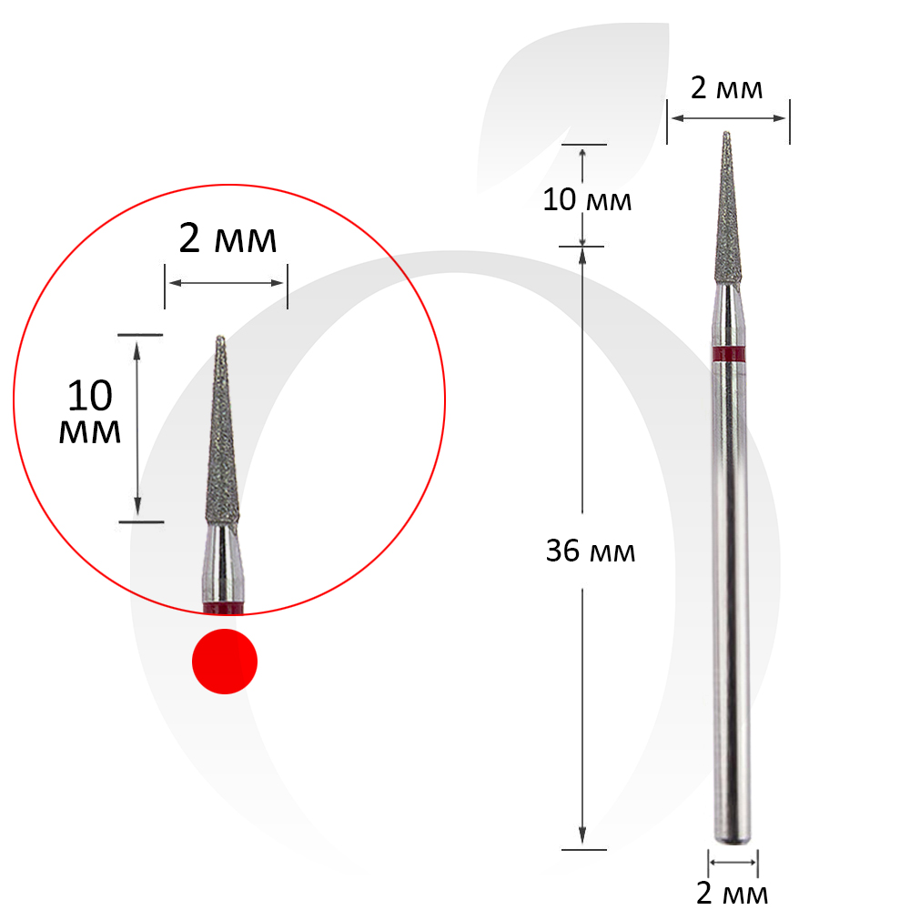 Фреза алмазна конус червона 2 мм, робоча частина 10 мм