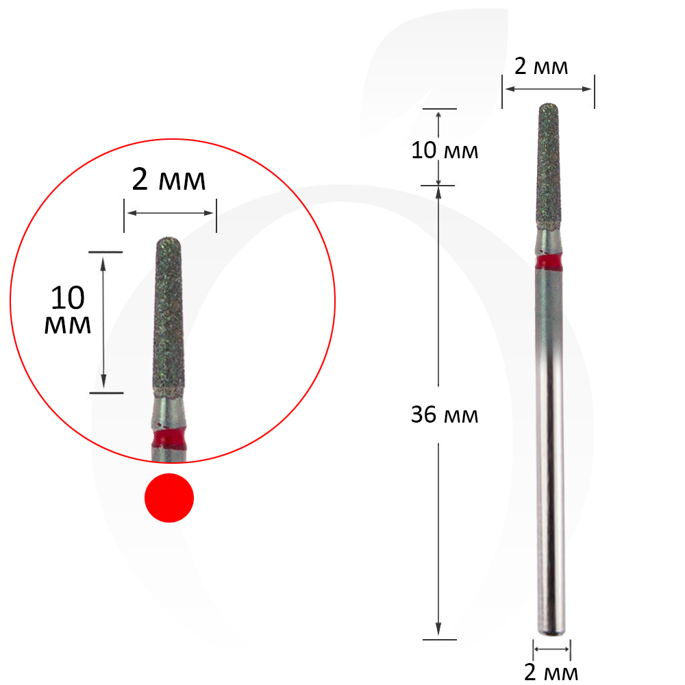 Фреза алмазна конус червона 2 мм, робоча частина 10 мм