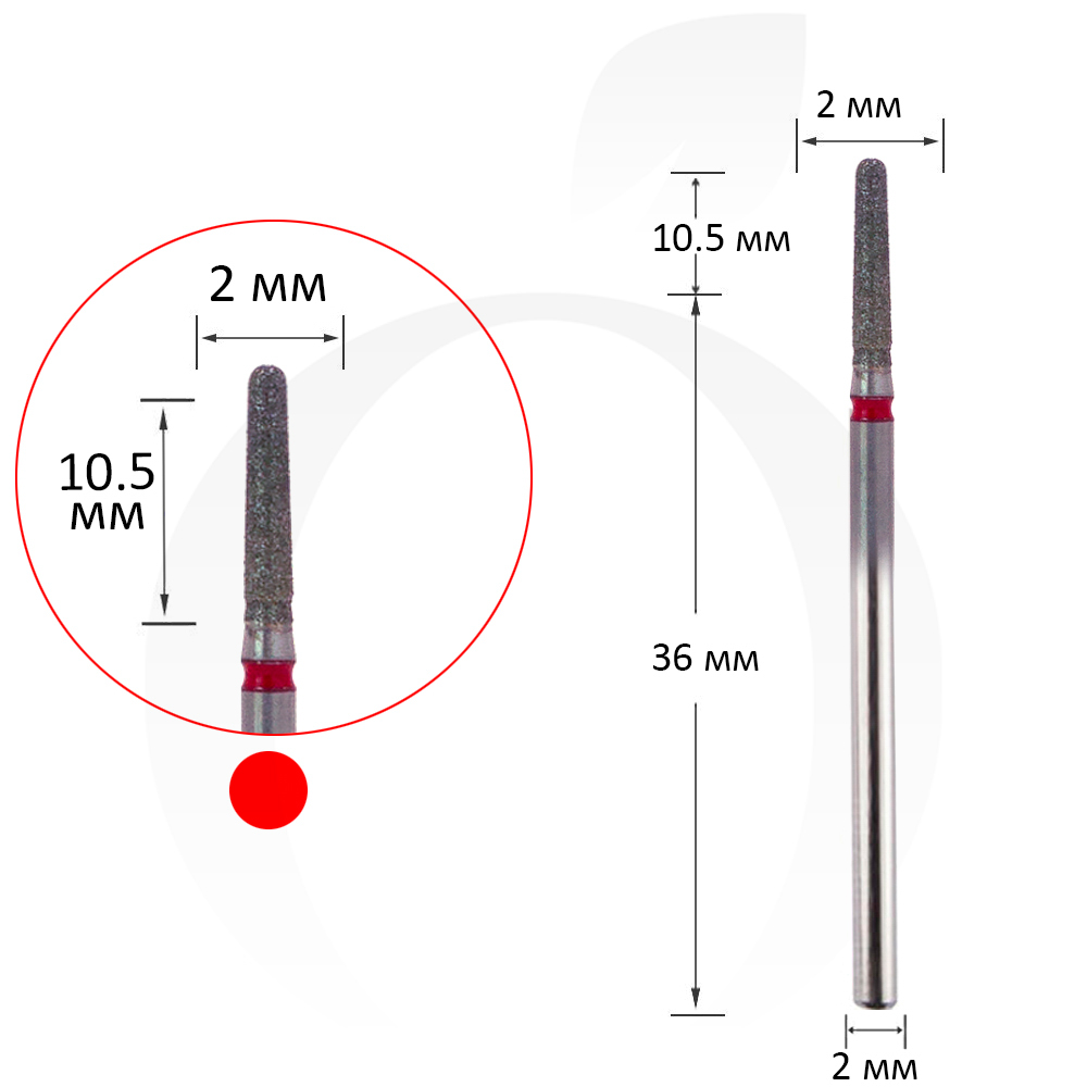 Фреза алмазна конус червона 2 мм, робоча частина 10.5 мм
