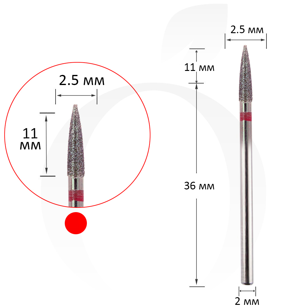 Фреза алмазна конус червона 2.5 мм, робоча частина 11 мм
