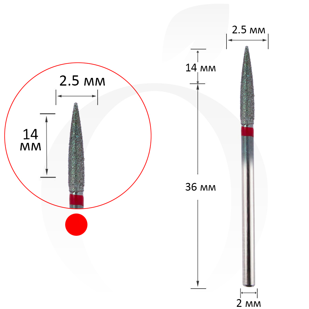 Фреза алмазна конус червона 2.5 мм, робоча частина 14 мм