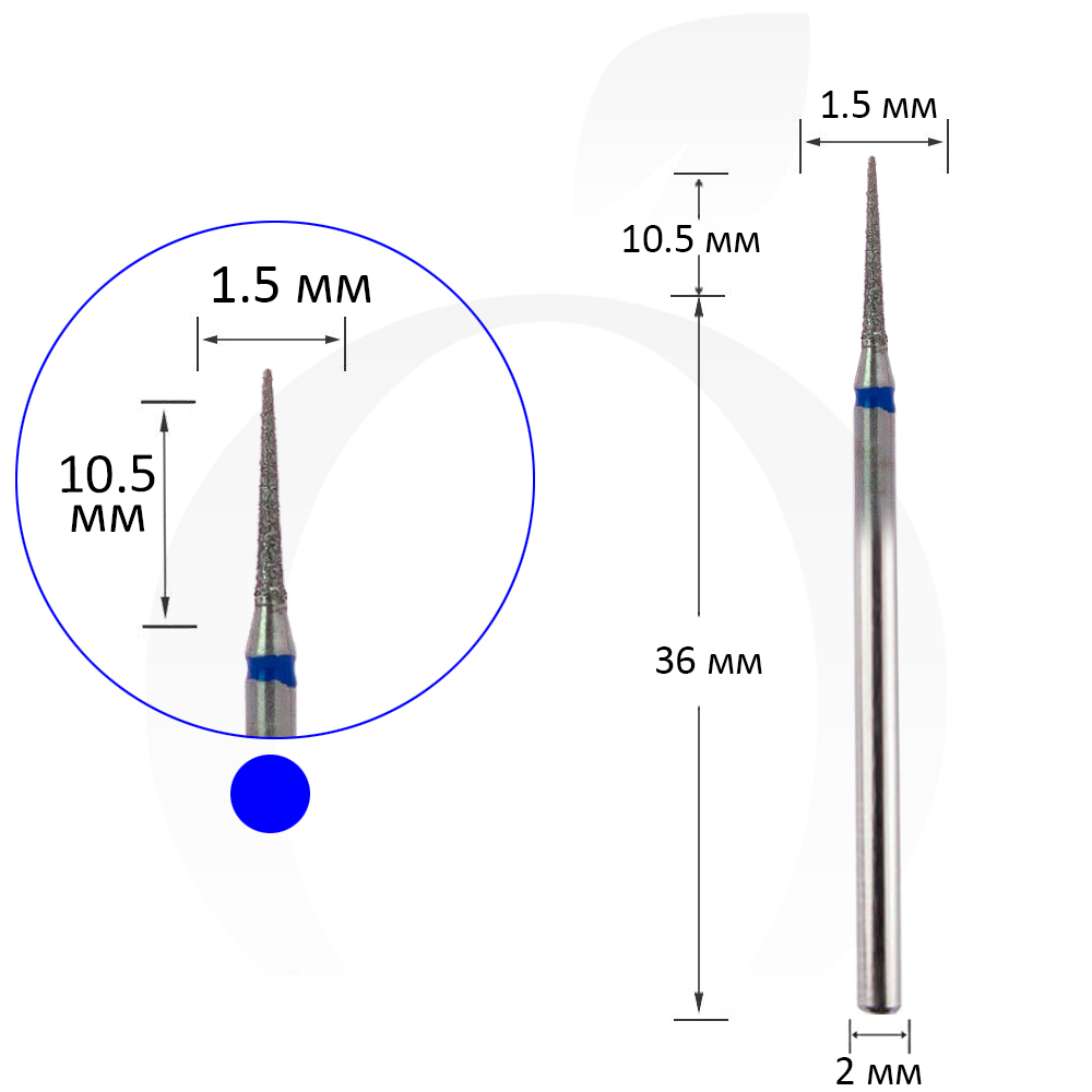 Фреза алмазна конус синя 1.5 мм, робоча частина 10.5 мм