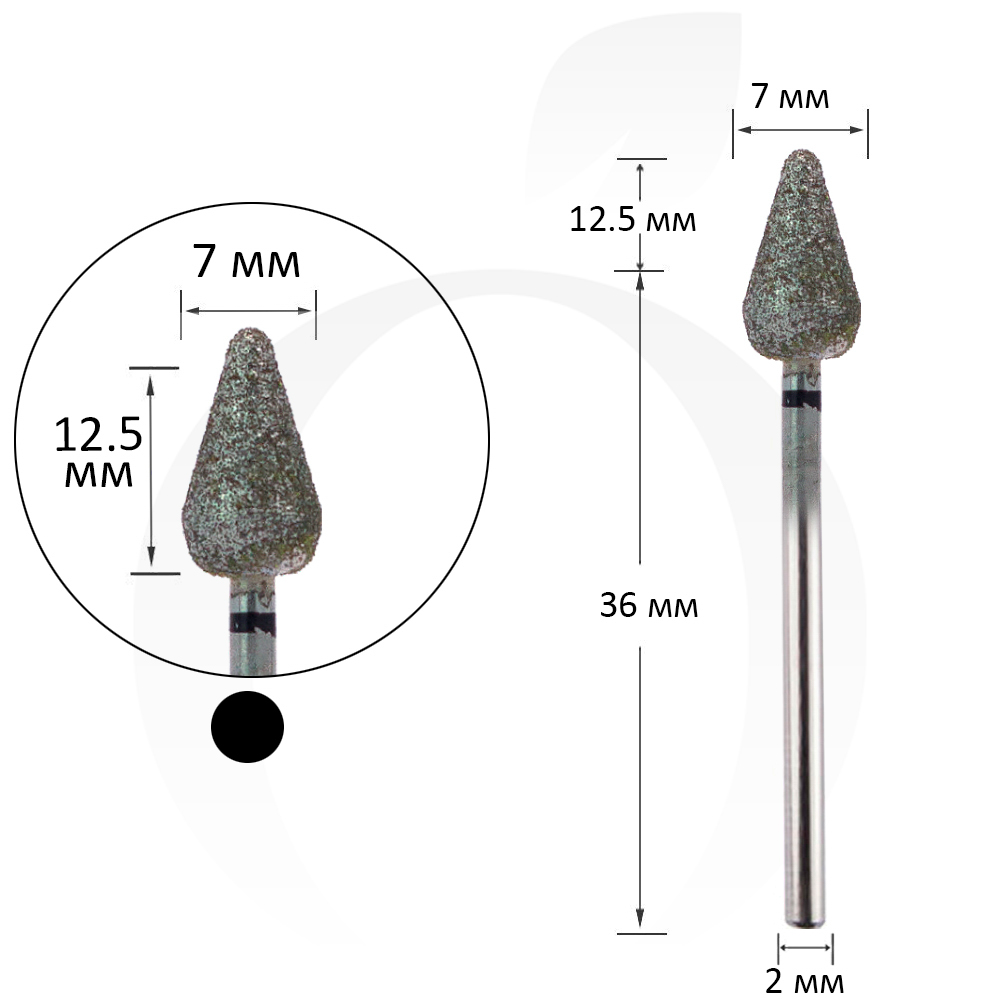 Фреза алмазна конус закруглений синя 7 мм, робоча частина 12.5 мм