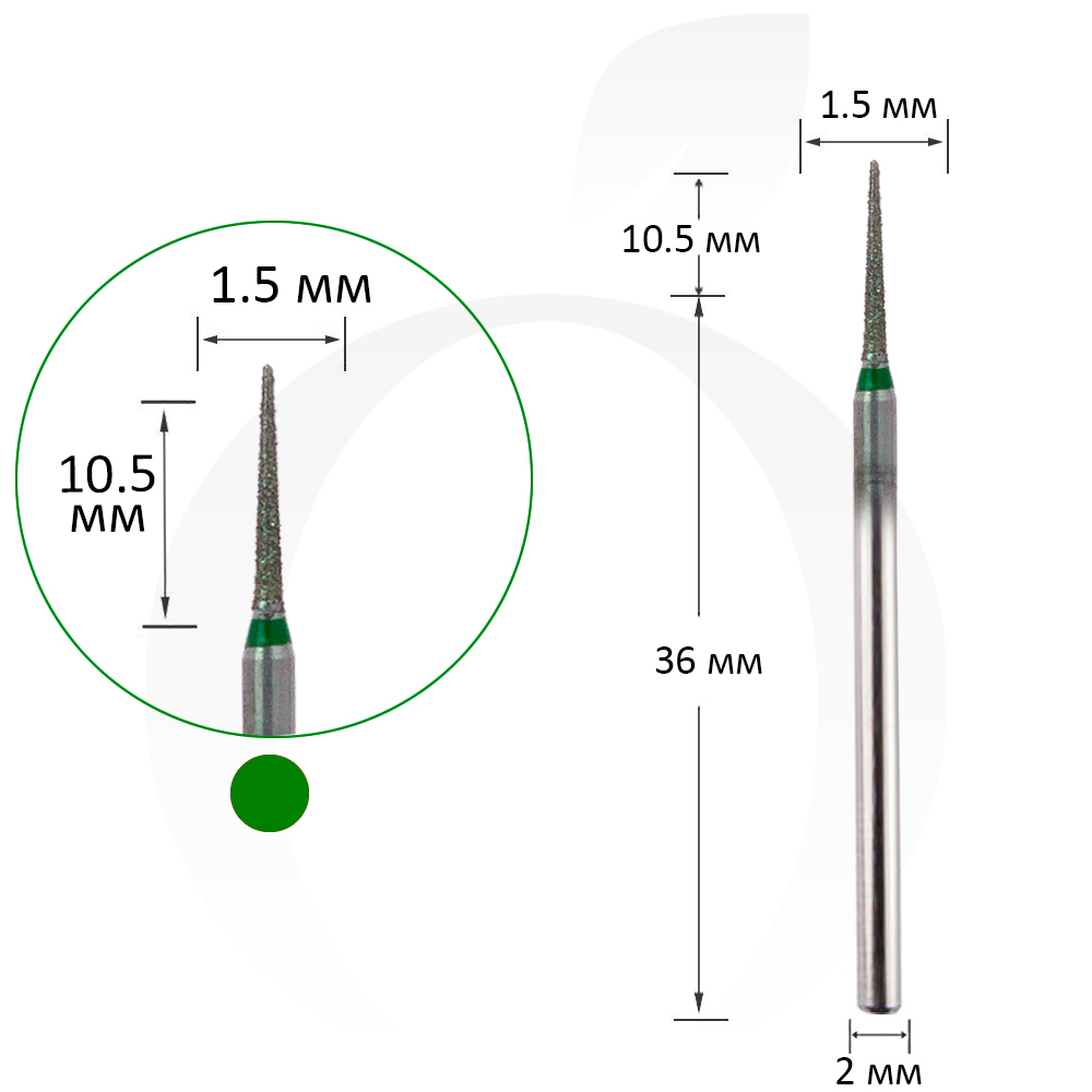 Фреза алмазна конус зелена 1.5 мм, робоча частина 10.5 мм