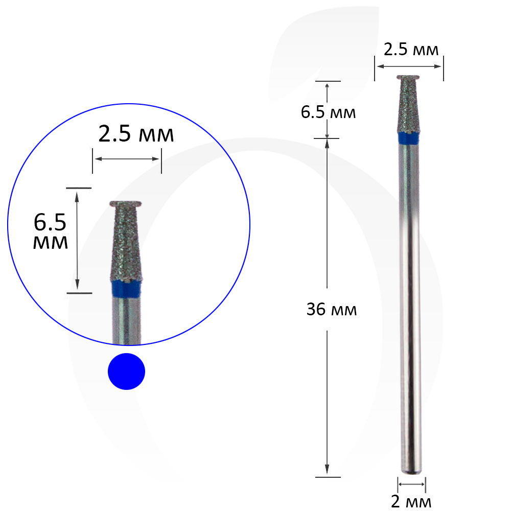 Фреза алмазна диск кругла синя 2.5 мм, робоча частина 6.5 мм