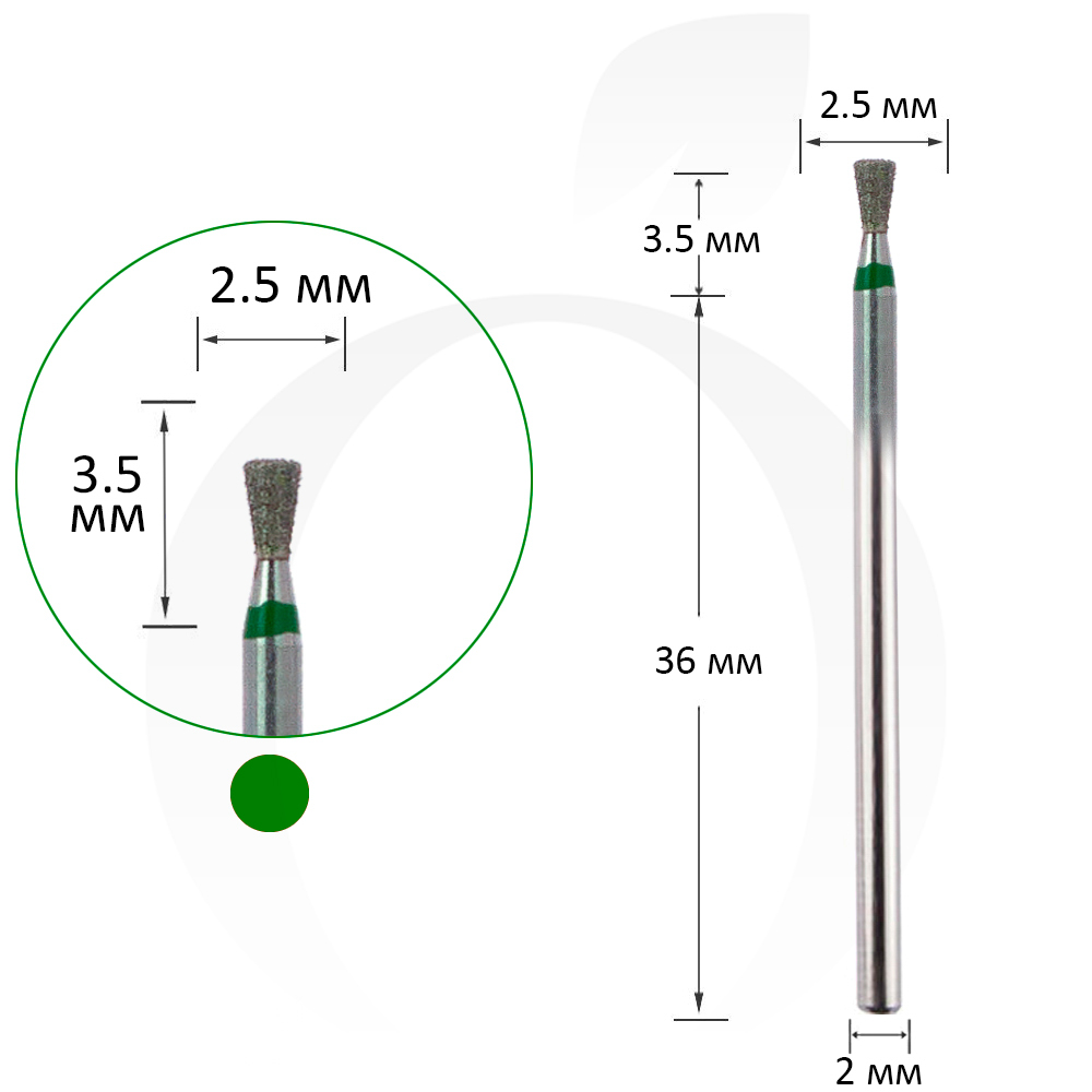 Фреза алмазна диск кругла зелена 2.5 мм, робоча частина 3.5 мм
