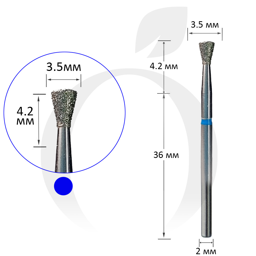 Фреза алмазна конус синя 3.5 мм, робоча частина 4.2 мм