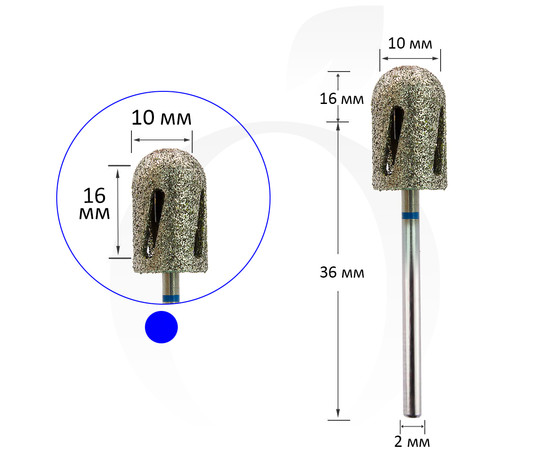 Фреза алмазна для педикюру Циліндр синій 10х16 мм