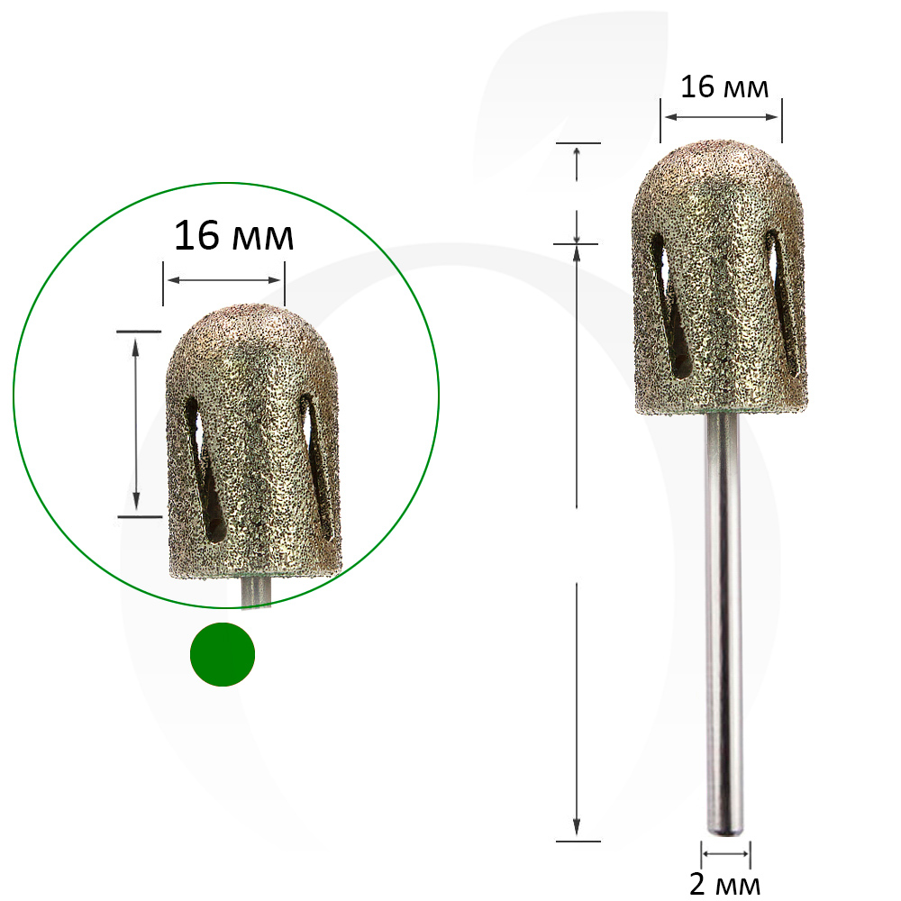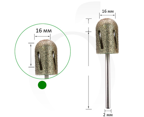 Фреза алмазна для педикюру Циліндр зелений 16 мм