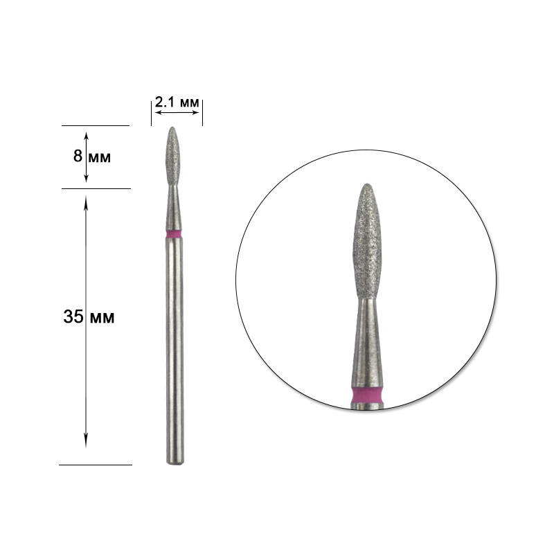 Фреза алмазна Staleks полум'я гостре червоне 2,1 мм, робоча частина 8 мм
