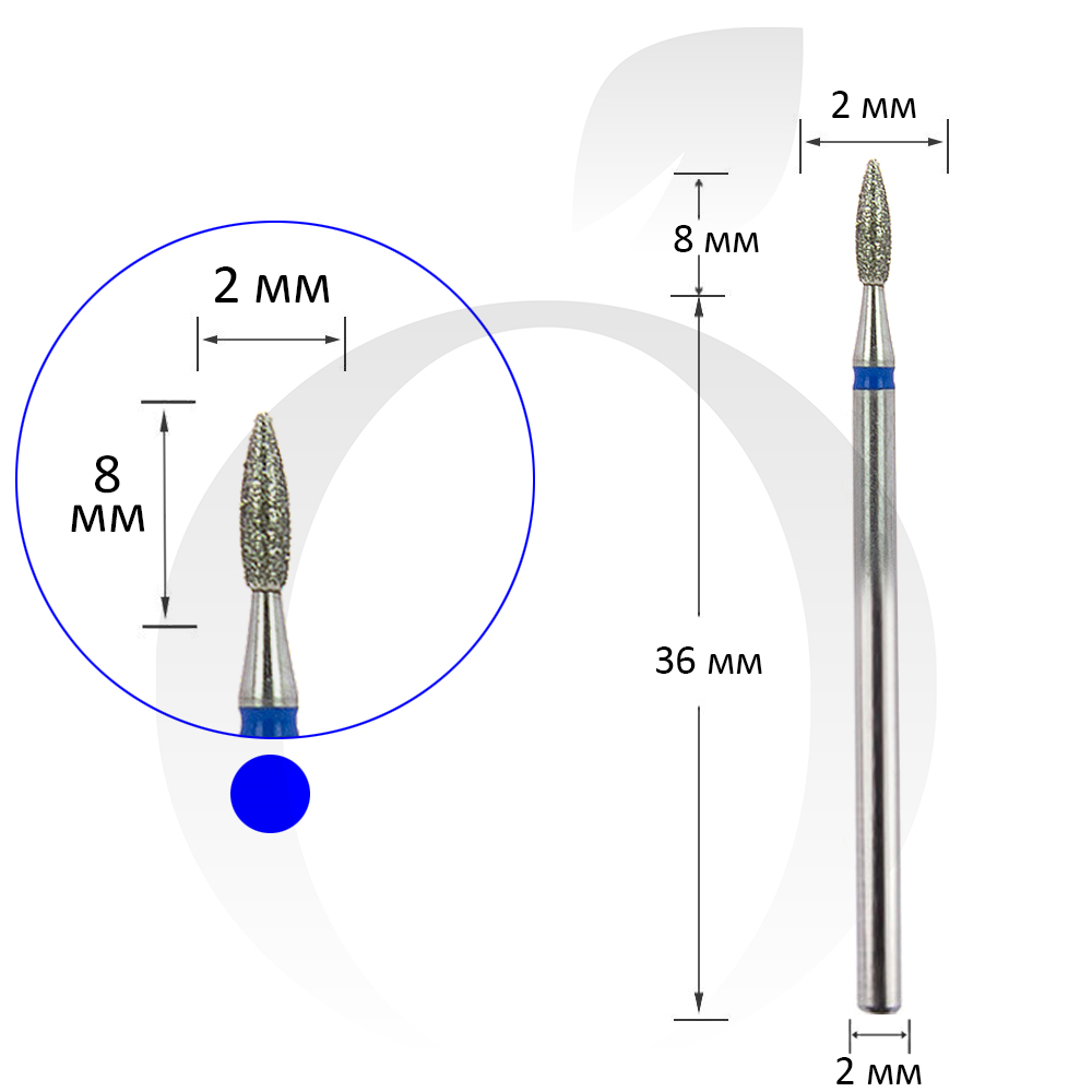 Фреза алмазна полум'я синя 2 мм, робоча частина 8 мм