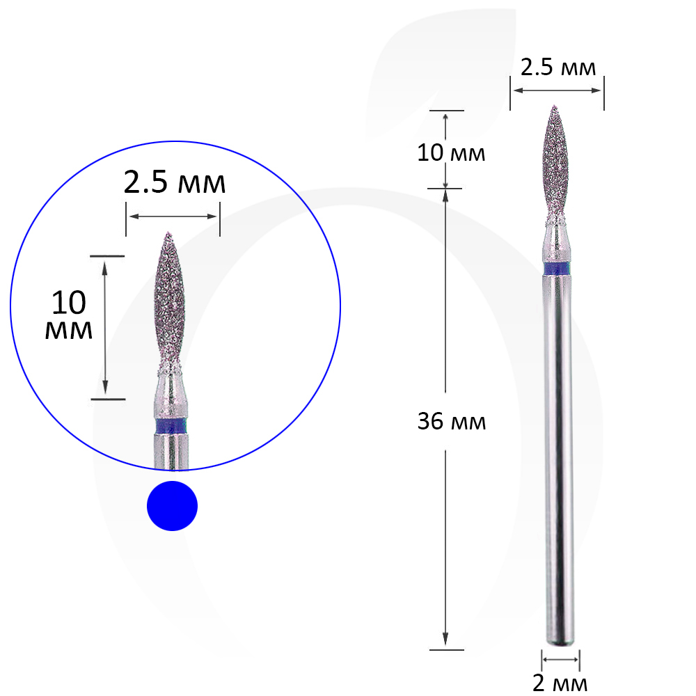 Фреза алмазна полум'я синя 2.5 мм, робоча частина 10 мм